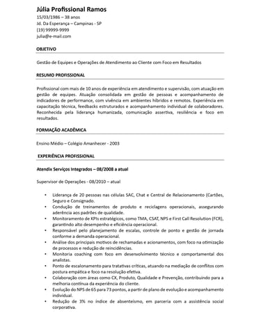 Currículo estratégico, claro e focado em resultados, com posicionamento profissional que atrai recrutadores.