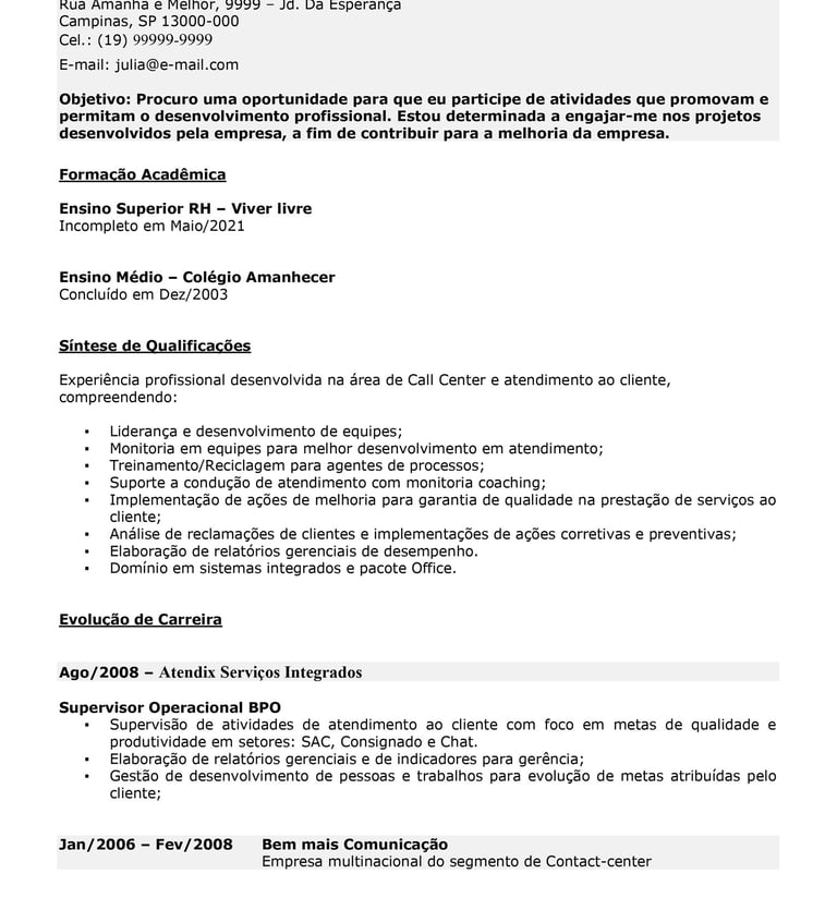 Meu currículo era confuso. Agora está profissional e objetivo.
